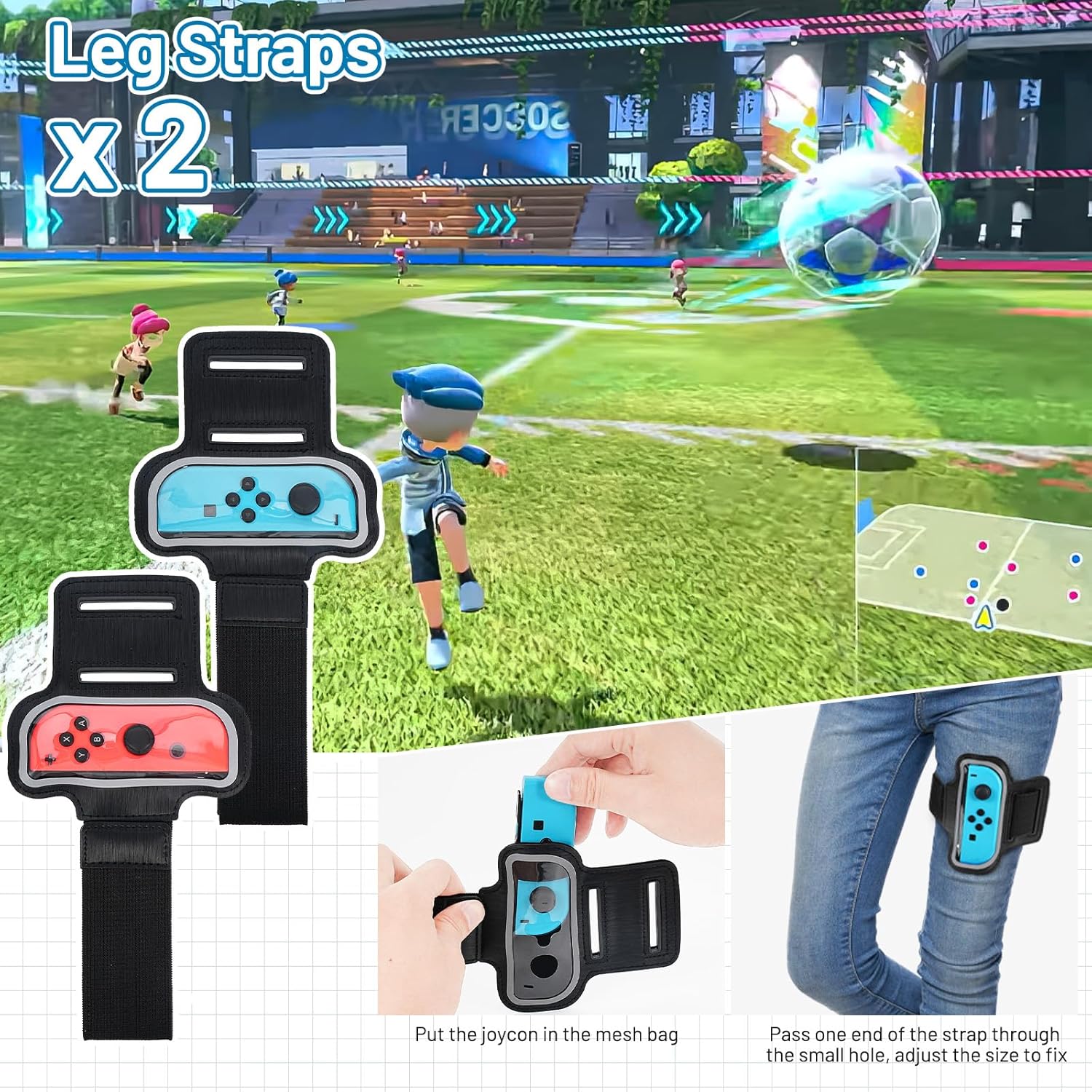 【Comfortable Ergonomic Design】This switch sports accessories bundle leg strap is compatible with the NS Sports Soccer/Switch Ring Hopper Adventure, adjustable length and comfortable to wear. The wristband is uniquely designed for the dance games. Cotton Armband Quality and Durable, uniquely designed 100% Cotton Armband is perfect for Switch sports games, Keeps your hands dry and the armband is elasticized to give you a simulated gaming experience!