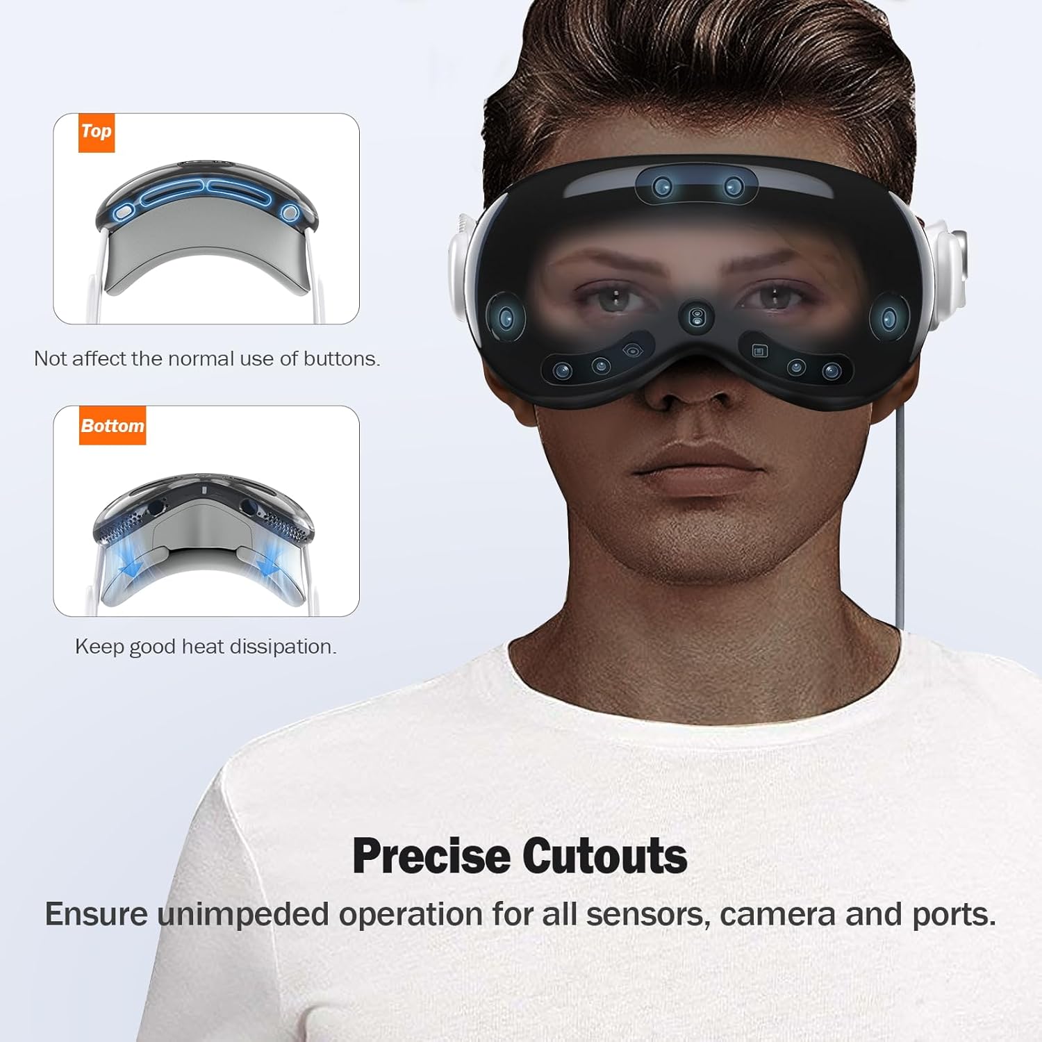 Precise Cutouts: Designed specifically for the Vision Pro, it is moulded to the real machine, with precise holes in the sensor, camera locations and each hole, so it won’t get in the way of signal tracking or affect your gaming experience.
