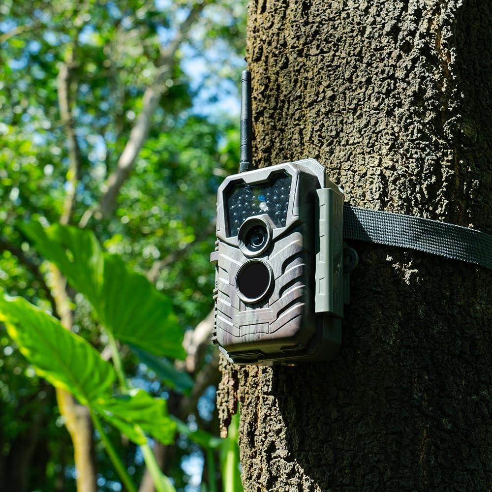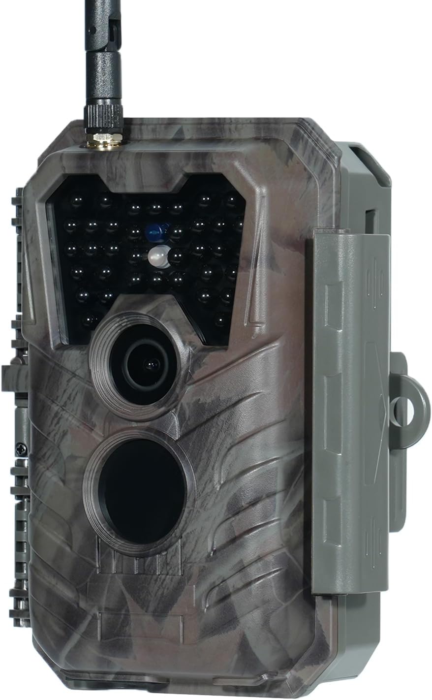 System Requirements Wi-Fi: 2.4GHz 802.11 b/g/n; App System Requirements: IOS 11.0 or later Android 7.0 or later. In open areas, wireless module connection (compatible with Bluetooth) within 33ft (10m); WiFi connection within 45ft (15m). Working Mode Motion Detection or Time Lapse. Programmable capture options: Photo, Video, Photo+Video. Night Vision Enhanced 36pcs high-performance 940nm IR LEDs; Range up to 75ft Motion Detection Fast trigger time approx. 0.2 second, Fast recovery time of 0.5 second, Long trigger distance up to 75ft. Photo Quality 48MP, 32MP, 24MP, 16MP, 8MP, 4MP Video Quality 2304×1296, 1920×1080; Aspectio Ratio – 16:9 Detection Delay Programmable 0sec ~ 1hour; 0 means as fast as possible Time Format 12h, 24h Time Stamp Date, Time, Moon Phase, Temperature, Camera Name Interfaces 2.4″ Color Screen, 7 x Operation Buttons, 1 x Power Switch, 1 x Mini USB Port, 1 x Standard-size SD Card Slot, 1 x External Power Source Jack (12A/1A, 5.5×2.1mm plug), Tripod Base on the bottom (1/4-20). Box Includes 1 x Trail Camera; 1 x Mounting Strap; 1 x Mini-USB Cord; 1 x Instruction Manual ; 1 x Antenna Setup Requirements 8 AA 1.5V batteries (Not included), a standard-size SD/SDHC/SDXC memory card (Not included, max capacity 512GB). Product Dimension 5.6 x 4.2 x 2.5 inch (highest x widest x thickest) Operation Temperature -4~140°F / -20~60°C Important Notes Before use, please format your SD card in the camera. Best Practices To get the best night image, please eliminate obstacles in front of the camera as possible. Recommend using lithium batteries in cold weather to get best performance. Recommend using SanDisk 32GB SDHC/Class10 memory cards in the camera to obtain the best cost-performance.