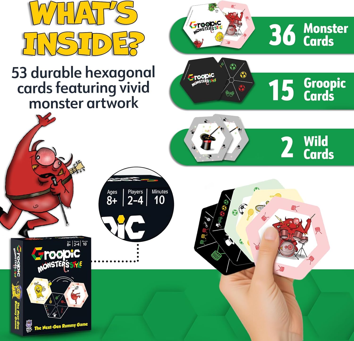 Content: Includes two unique card games designed for kids ages 8-12 and adults. These light strategy games are easy to learn and fun to play, featuring a wonderfully whimsical monster theme.