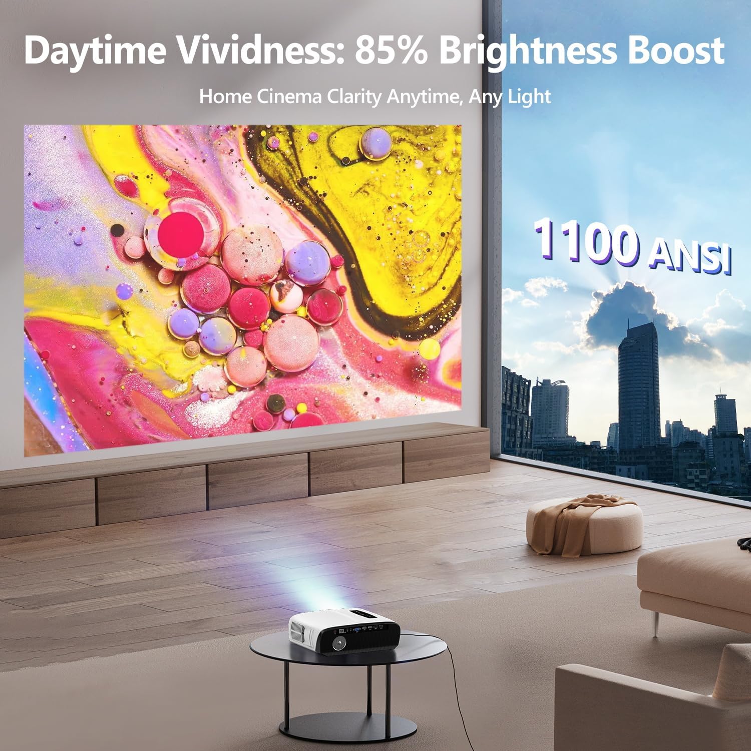 【 More than Smart – 50% Zoom & Auto Keystone】The home theater projector can precisely adjust the projection focus to get a clear image in seconds. In addition to automatic vertical correction, 100-50% zoom and 6D electric keystone correction make it easy to find the right angle and size for side projection. Perfect for RV camping, gym, bedroom, garden parties, presentations and small gatherings. Explore limitless possibilities with our ultra-bright 4K projector.