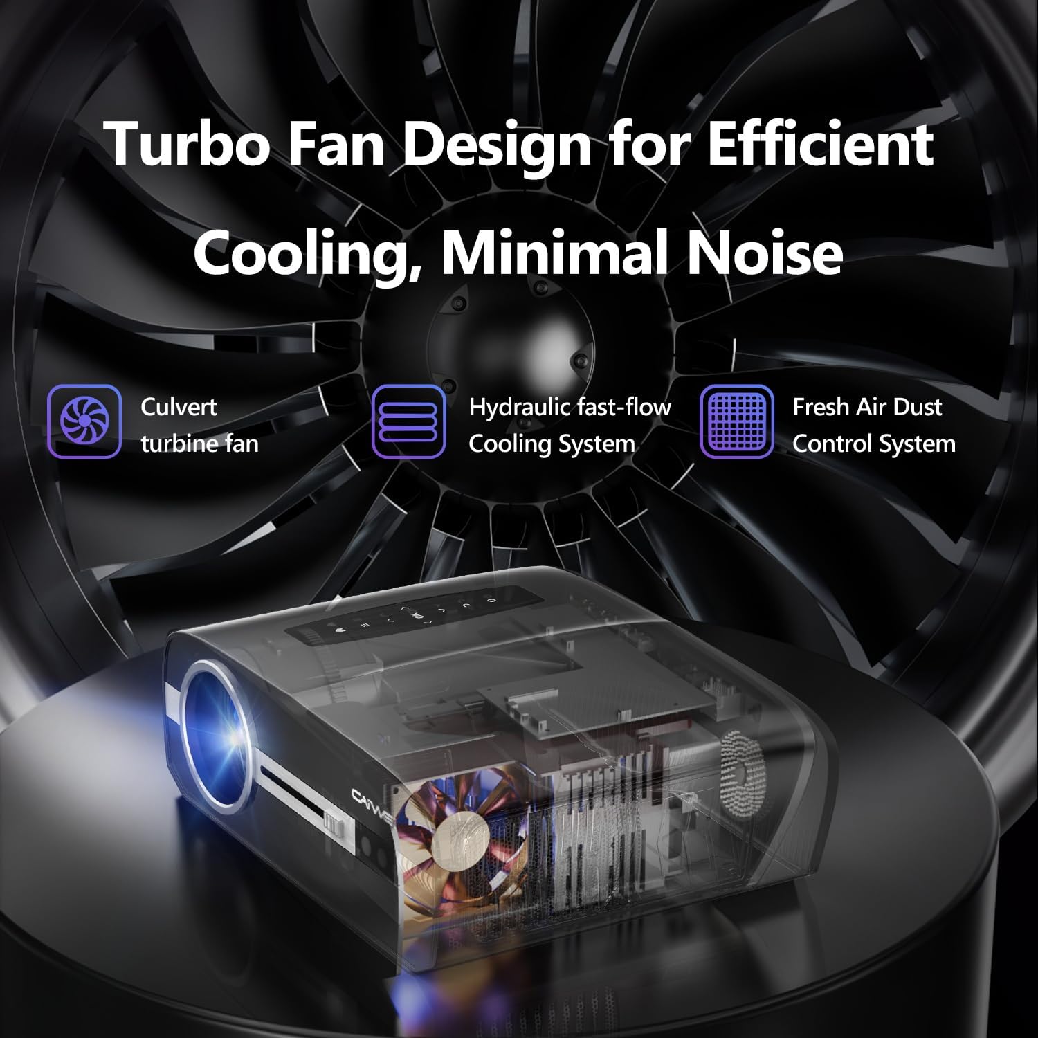 【Fully-Sealed Engine & Noise Reduction】LED projector A9S increases the heat sink area by 50%, improving the efficiency of the cooling system. Reduce the required speed and use high quality fans to keep noise levels below 28 decibels. Paired with an optical path structure with dust-proof design, the 1080p projector effectively avoids screen black spots and image quality loss for long-lasting performance, also provides you with a quiet and immersive viewing experience.