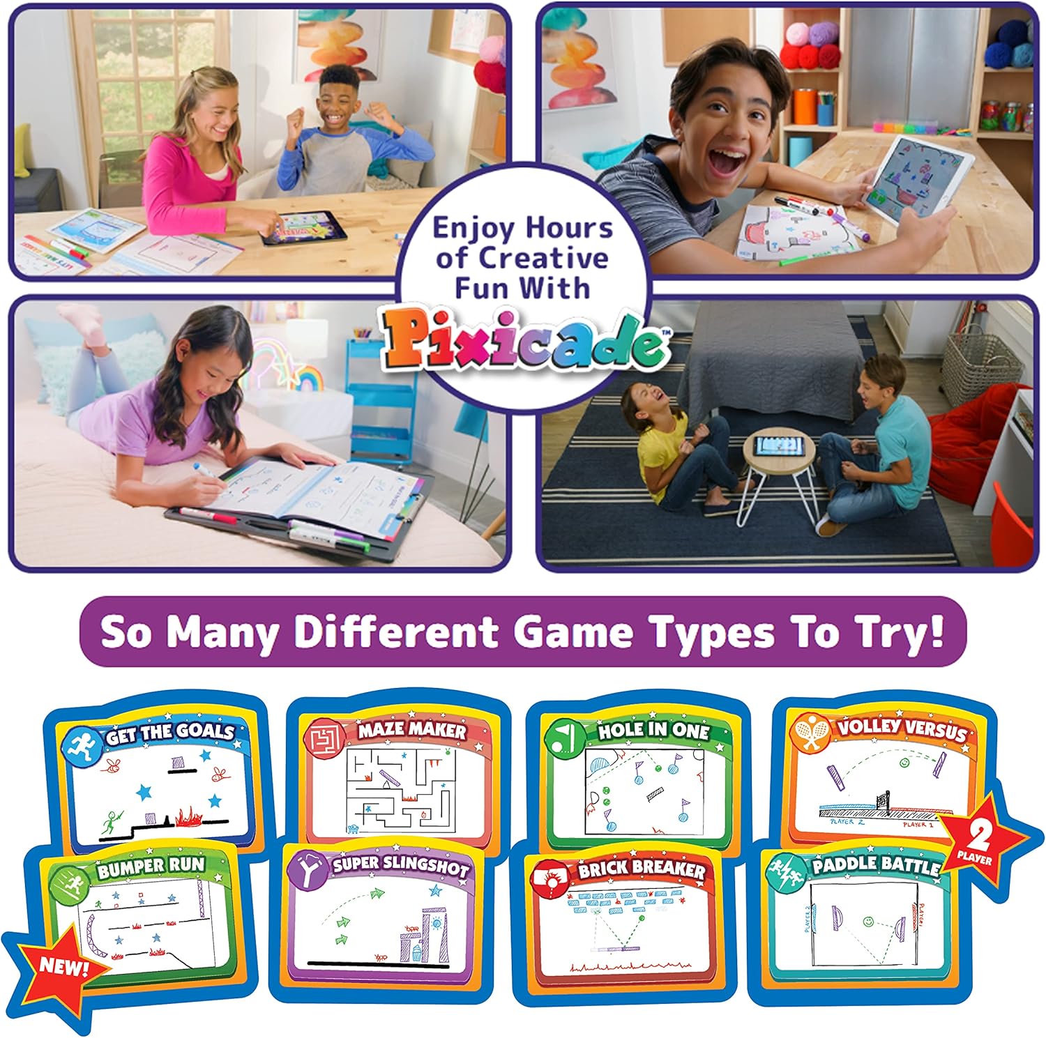 🍎 #1 FUN LEARNING TOY TURNS DRAWINGS INTO VIDEO GAMES— Kids and teens use colored markers and paper to turn hand drawings into instantly playable video games! Pixicade is an activity that provides kids with positive screen time, the only limitation on Pixicade is your imagination!