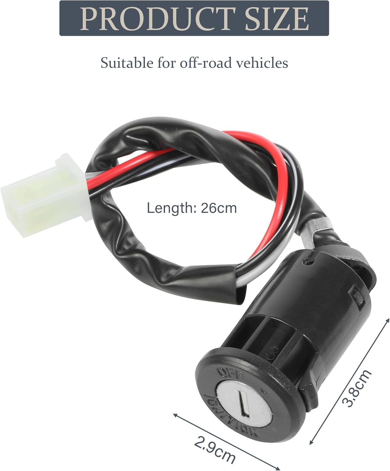 -The ignition key switch has a durable lock cylinder and high durability against harsh weather conditions. It will not rust or corrode either