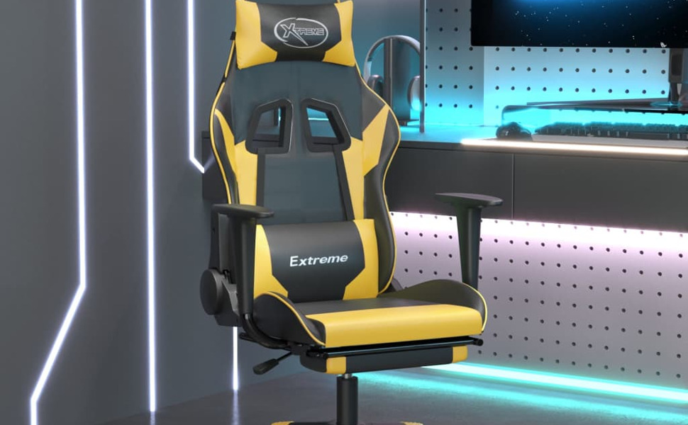 vidaXL Black & Gold Faux Leather Massage Gaming Chair with Footrest, Adjustable Backrest and Swivel Design, Sturdy and Stylish Comfort for Gamers