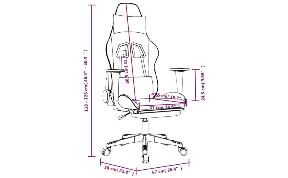 【Detailed Dimensions】: Overall dimensions are 26.4″ x 22.8″ x (46.5″-50.4″) (W x D x H), suitable for any gaming or workspace setup