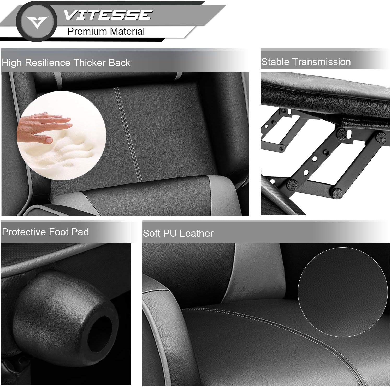 VITESSE Gaming Recliner Chair Racing Style Single Ergonomic Lounge Sofa Modern PU Leather Reclining Home Theater Seat for Living Gaming Room (Grey).