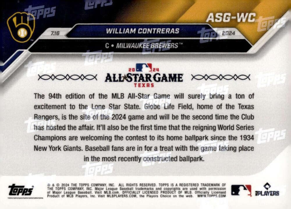 WILLIAM CONTRERAS 2024 Topps NOW All-Star Game Brewers NM-MT Baseball PR:TBD