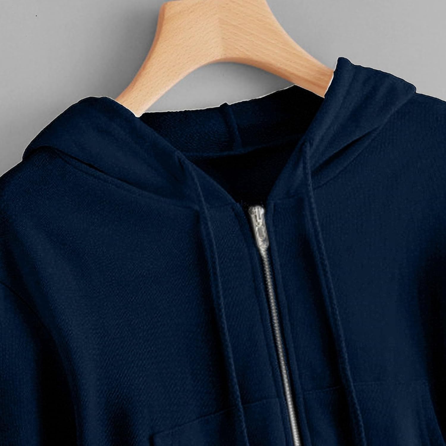 Women Casual Solid Long Sleeve Zipper Pocket Shirt Hooded Sweatshirt Tops Casual Hoodie