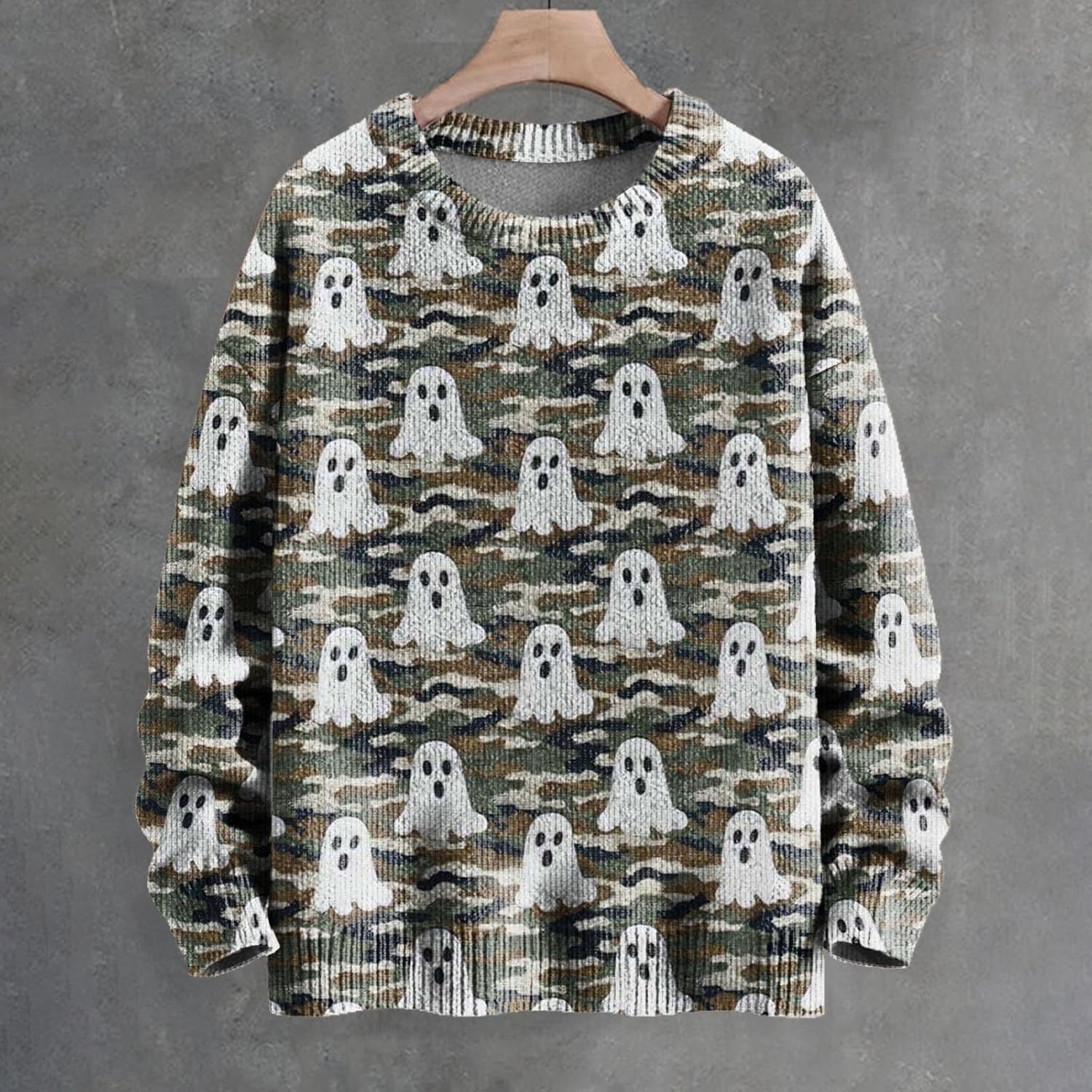 Halloween Pajamas Women Halloween Sweatshirts for Women Cute Ghost Reading Books Knit Sweater