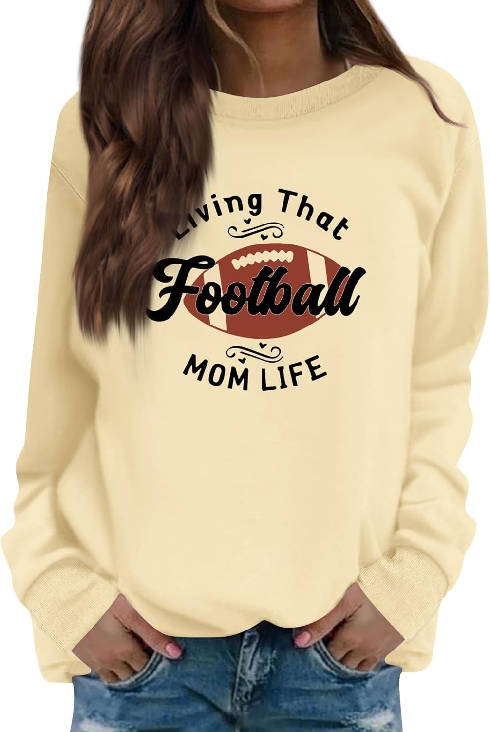 Women’s Fall Clothes 2024 Hoodies & Sweatshirts Long Sleeve Solid Color Crewneck Graphic Football Sweatshirts