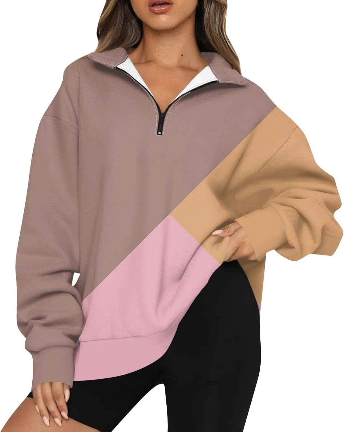 Women’s Fall Fashion 2024 Hoodies & Sweatshirts Long Sleeve Striped Half Zip Sweatshirt Up Hoodie, S-3XL