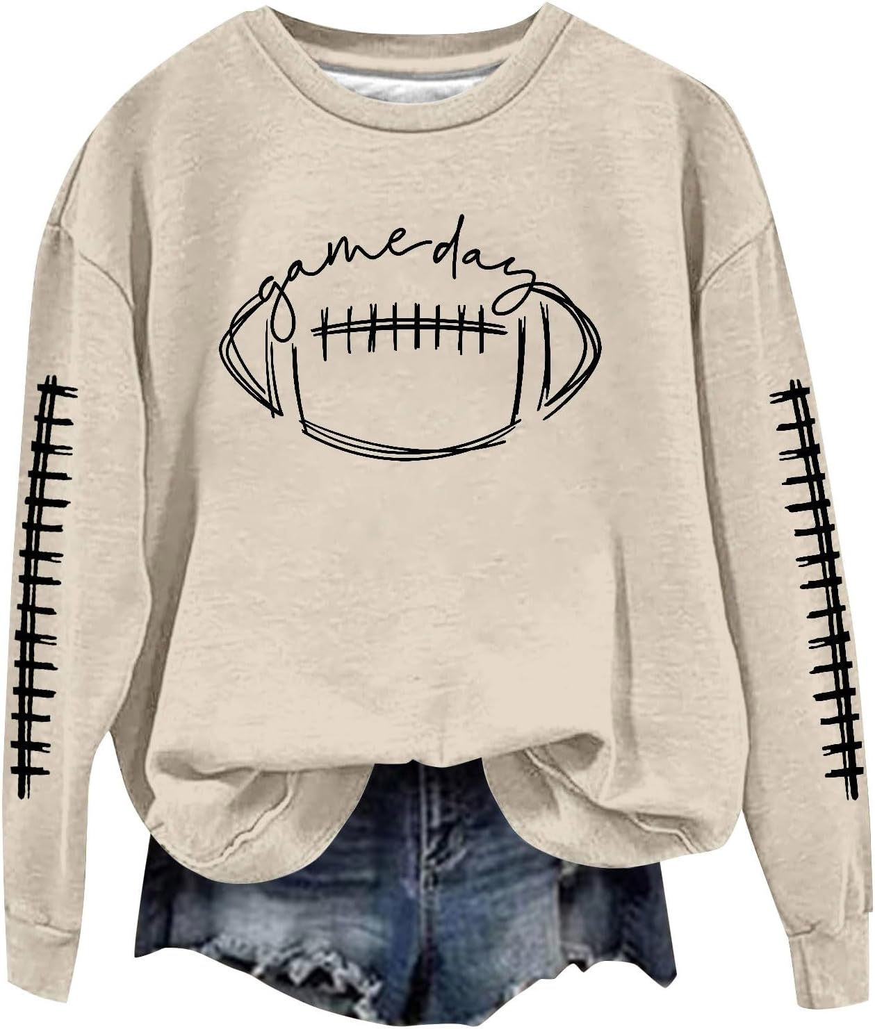 Womens Football Sweatshirt,2024 Fall Sweatshirts Pullover Comfort Crew Neck Sweatshirts Rugby Graphic Plus Size Sweatshirts