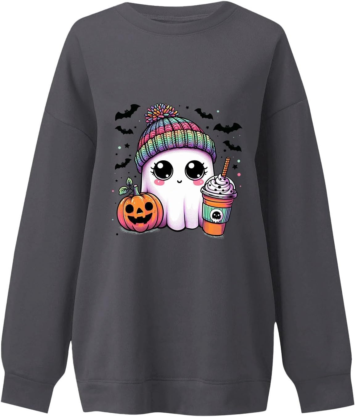 Halloween Sweatshirts for Women Cute Ghost Long Sleeve Shirt Spooky Season Sweatshirts Fall Fashion 2024 Halloween