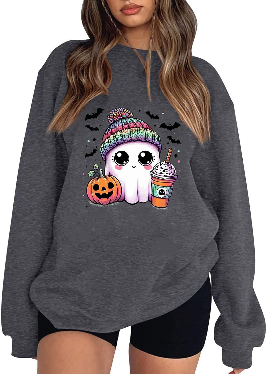 Women Halloween Oversized Pullover Funny Ghost Graphic Sweatshirts Fall Shirts
