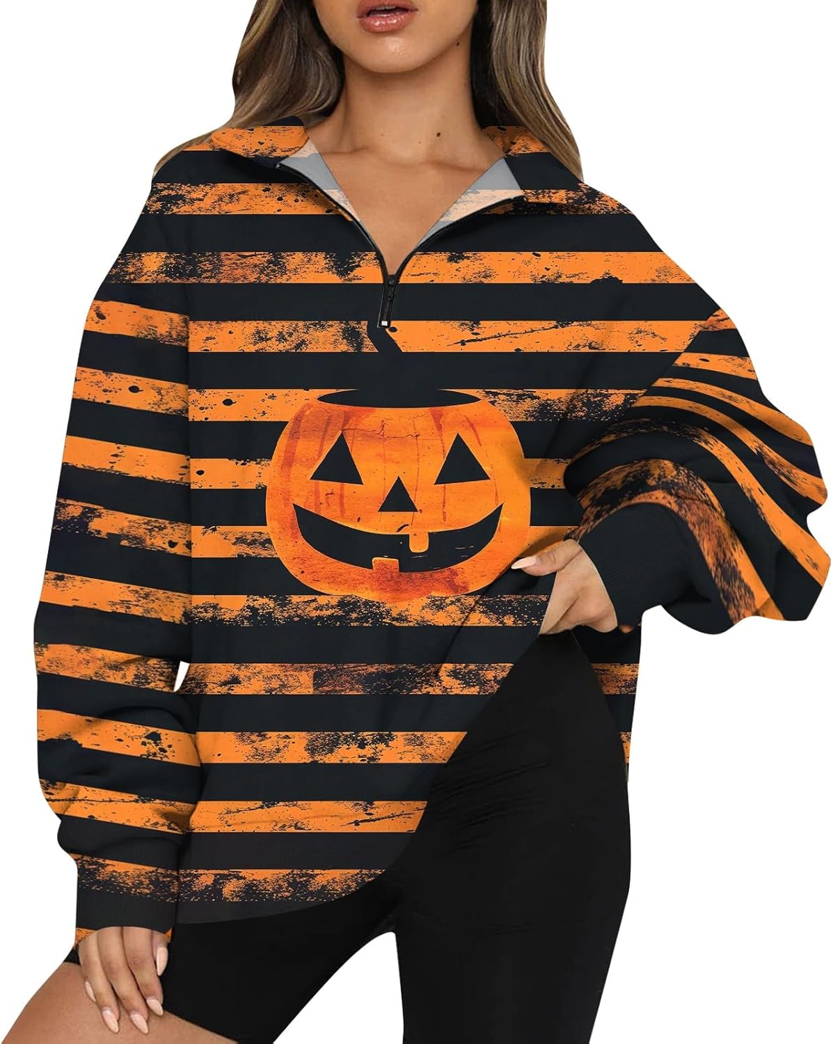 Women’s Spooky Crewneck Sweatshirt Casual Fashion Long Sleeve Halloween Sweatshirt Oversize Half Zip Outfits, S-3XL