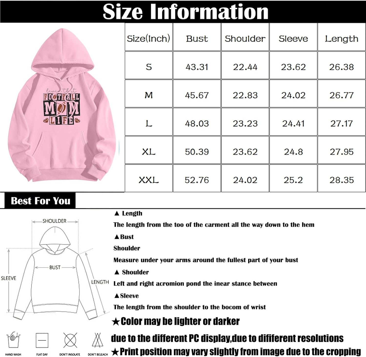 for both men and women, their casual and stylish design will keep you comfortable all day long [Women’s Hoodies – Unleash Your Style]: Be the center of attention with this stylish and individual hoodie; long sleeves, drawstring hood and stylish graphic design create an effortlessly cool streetwear look; stay warm and stylish with this oversized pullover [Girls’ Hoodies – Women’s Hoodies Occasions]: Perfect for daily life, home, outdoor, activities, sports, work, street basketball, hip-hop, school, vacation , travel, club, activities or work occasions, etc.; the long sleeve and hooded design is both comfortable and stylish, perfect for any casual occasion [Women’s Hoodies – Fashion Sweatshirt Matching]: This hoodie pairs perfectly with jeans and, perfect for street parties, city parties or simply expressing your personality; a must-have for the street, making you look cooler and more fashionable, suitable for spring, autumn and winter [Washing Precautions]: The printing is processed by special technology, please do not rub the printing contact surface vigorously Includes: 1 sweatshirt