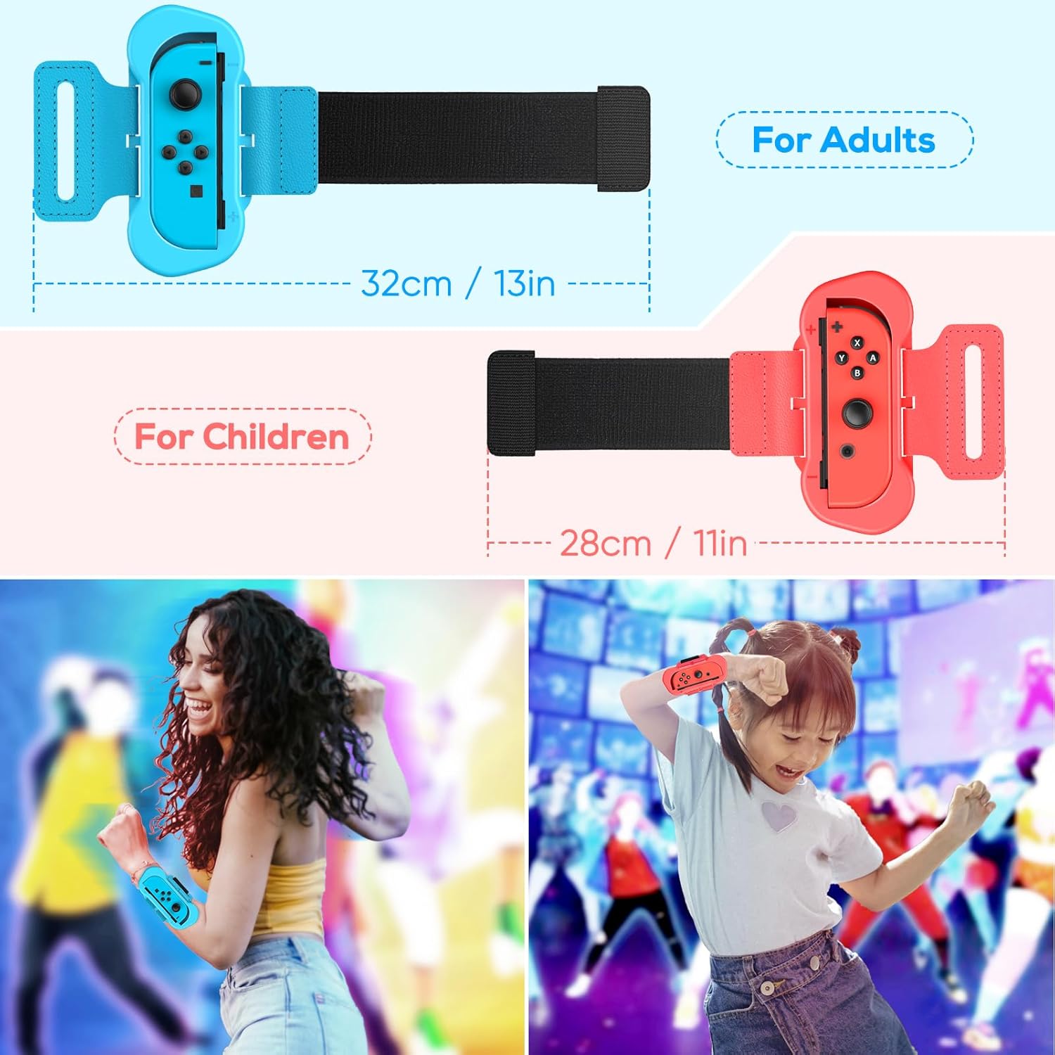 WHAT YOU GET: There are two wrist straps compatible with Nintendo Switch for Dance 2024 games in the package. One for kids measuring 11″ (28cm) long and one for adults measuring 13″ (32cm) long. Your accuracy with dance moves will be better while using these. Perfect if you want to have a dance gaming day with your family and friends!