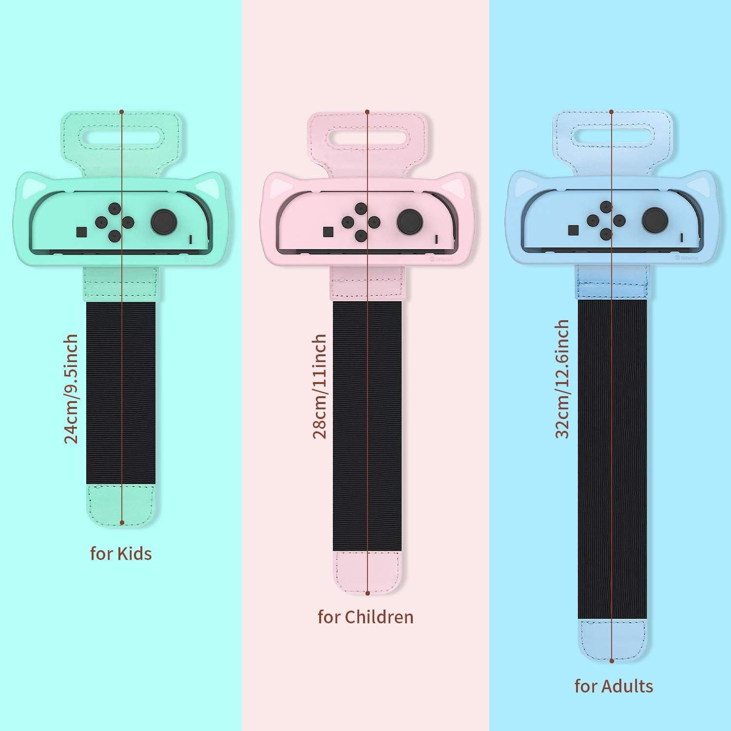 WHAT YOU GET: ID CHINSION Wrist bands for switch games dance 2024, 2023 2022, 2021, three size 9.5inch 11inch and 12.6inch fit most wrist sizes, color green pink and blue, and friendly customer service.