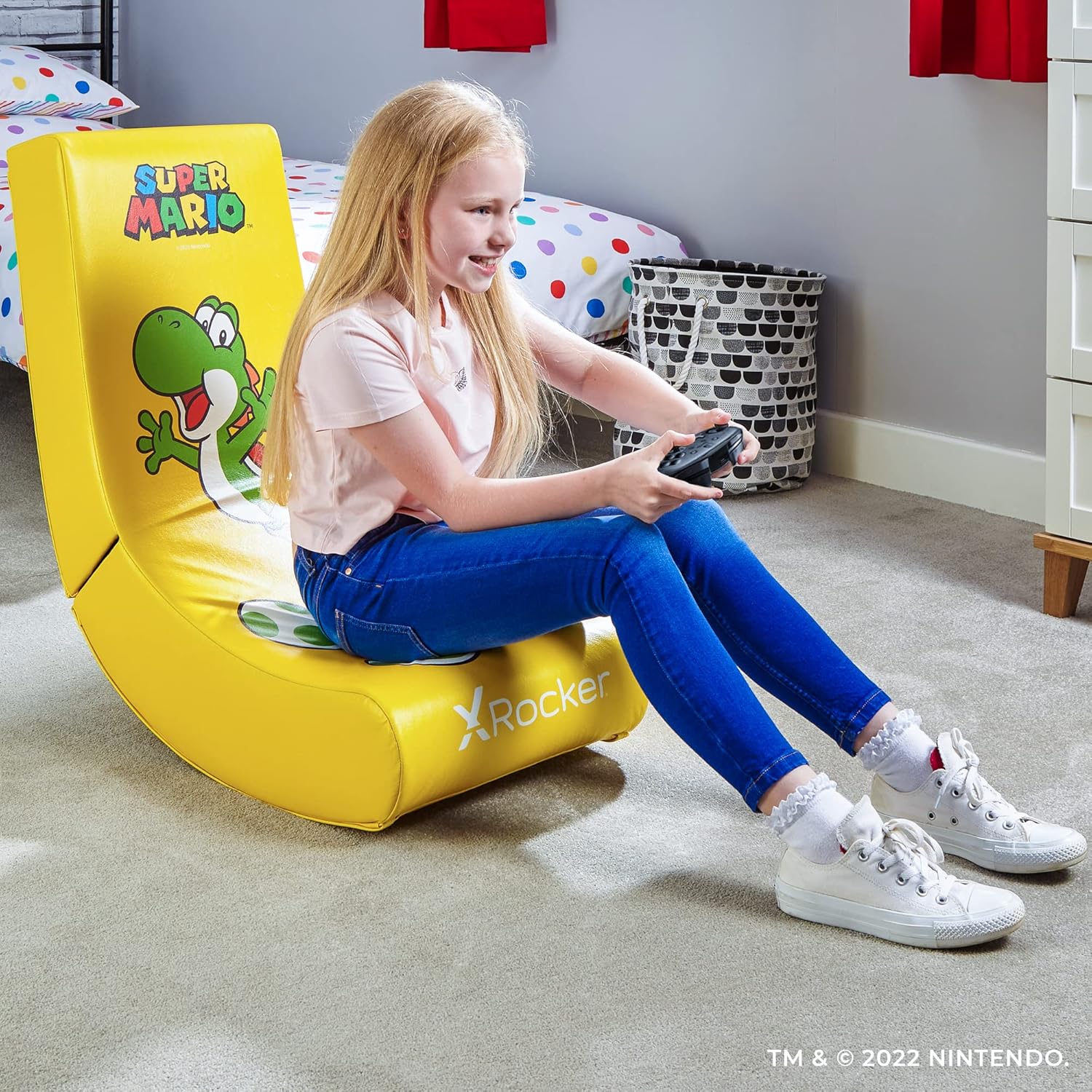 X Rocker Official Super Mario Video Gaming Floor Chair, All-Star Edition Nintendo Collectible, Faux Leather, Foldable, Youth