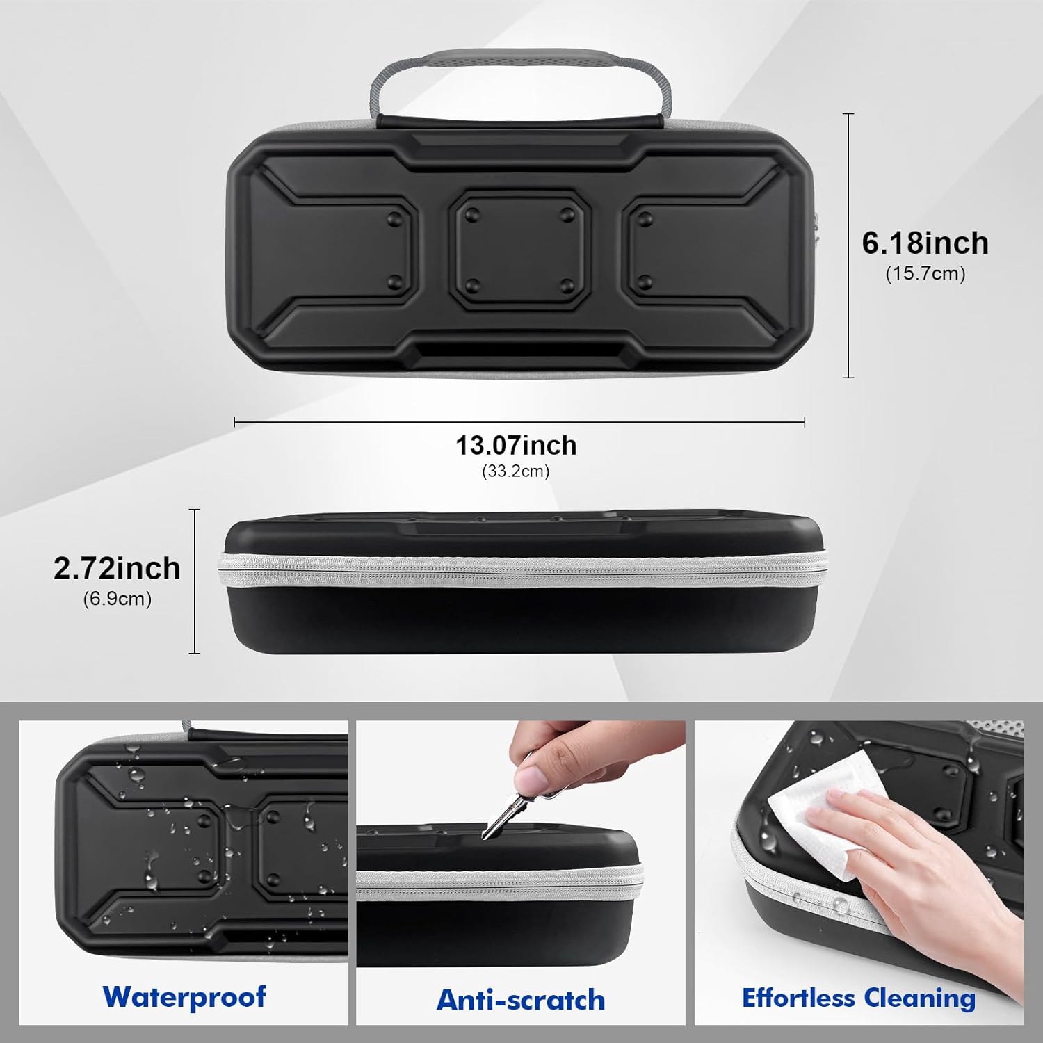 Unique Design: Crafted with armor-like materials for enhanced security and featuring a waterproof function. Additionally, it includes extra straps and compartments for storing game cartridges, charging cables, headphones, and other accessories.