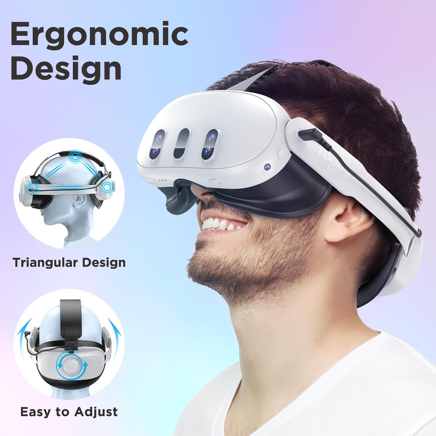 Ergonomic Design – The Yoges 2024 New Upgrade quest 3 battery strap features soft and thick leather cushions on the top and back, complemented by our newly designed rear battery pack, and weighs less than 300g overall, which perfectly balances the weight of the VR headset.
