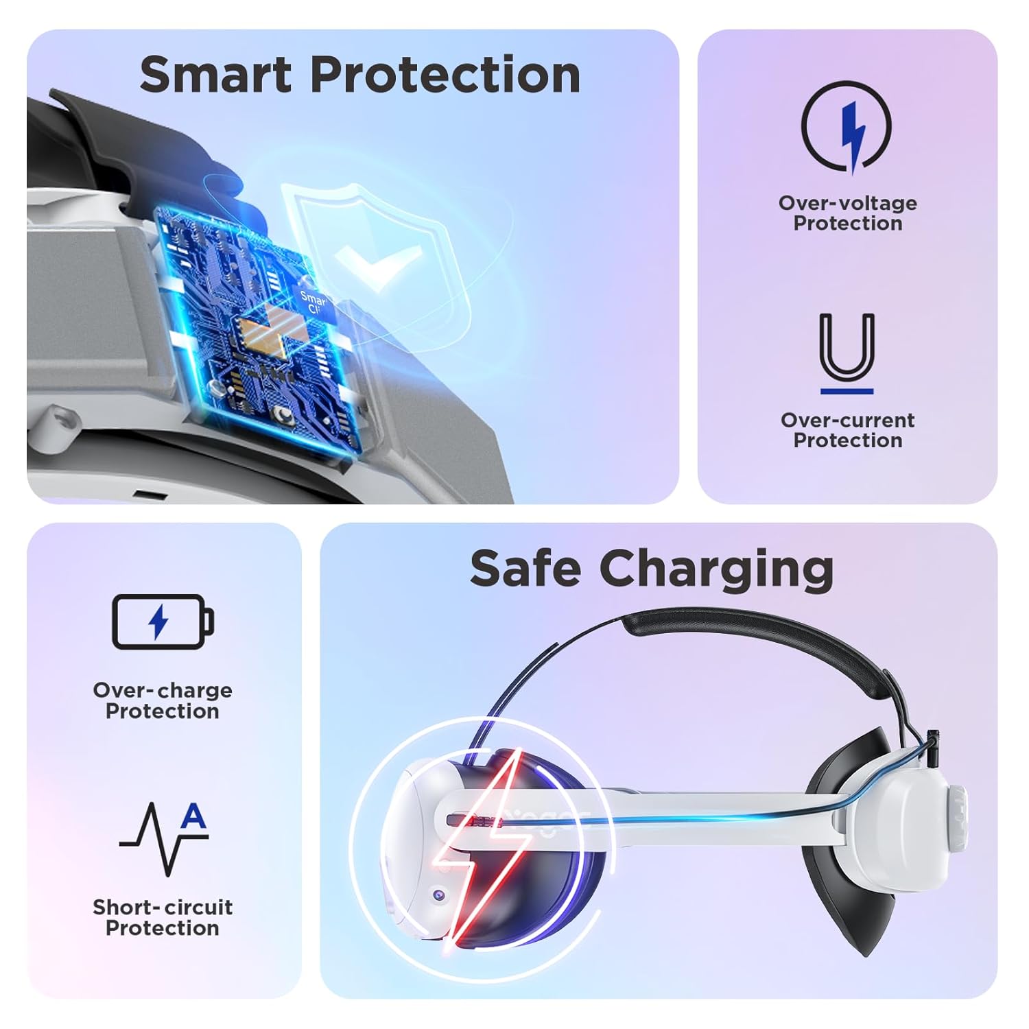 Extend VR Playing Time – To ensure your VR experience with Quest 3, we have selected the industrial-grade batteries for Yoges Comfort Battery Head Strap. The built-in 6000mAh batteries can extend over 2 hours(depending on loads) extra playing time.
