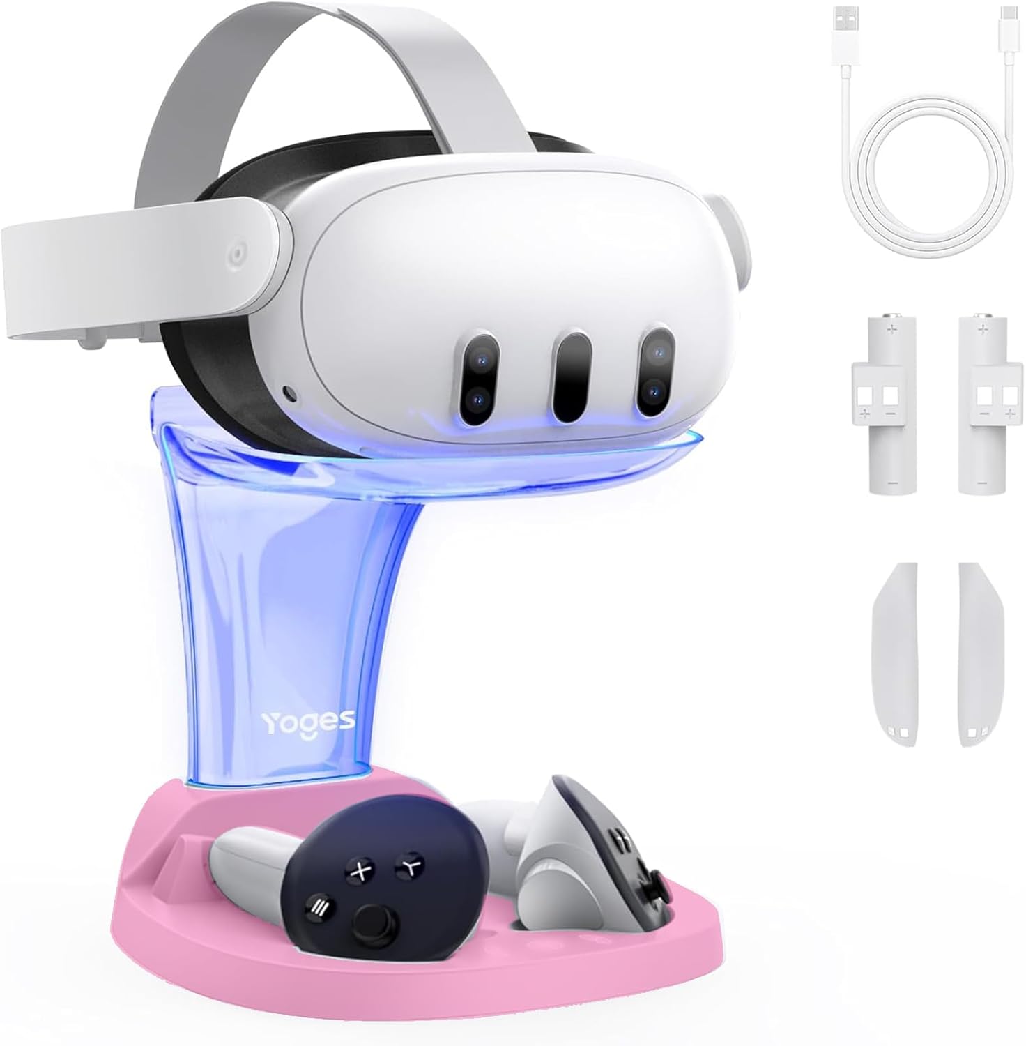 【2 Rechargeable Controllers Batteries Kits Included】Our 2-in-1 quest 3 charging dock equiped with 2 rechargeable batteries for VR headset and controllers. It’s an eco-friendly, cost-effective, space-saving and time-saving choice. YOGES Compatible with meta quest 3 Charging Dock can Charge and organize the quest 3 heatset and the controller in one dock.