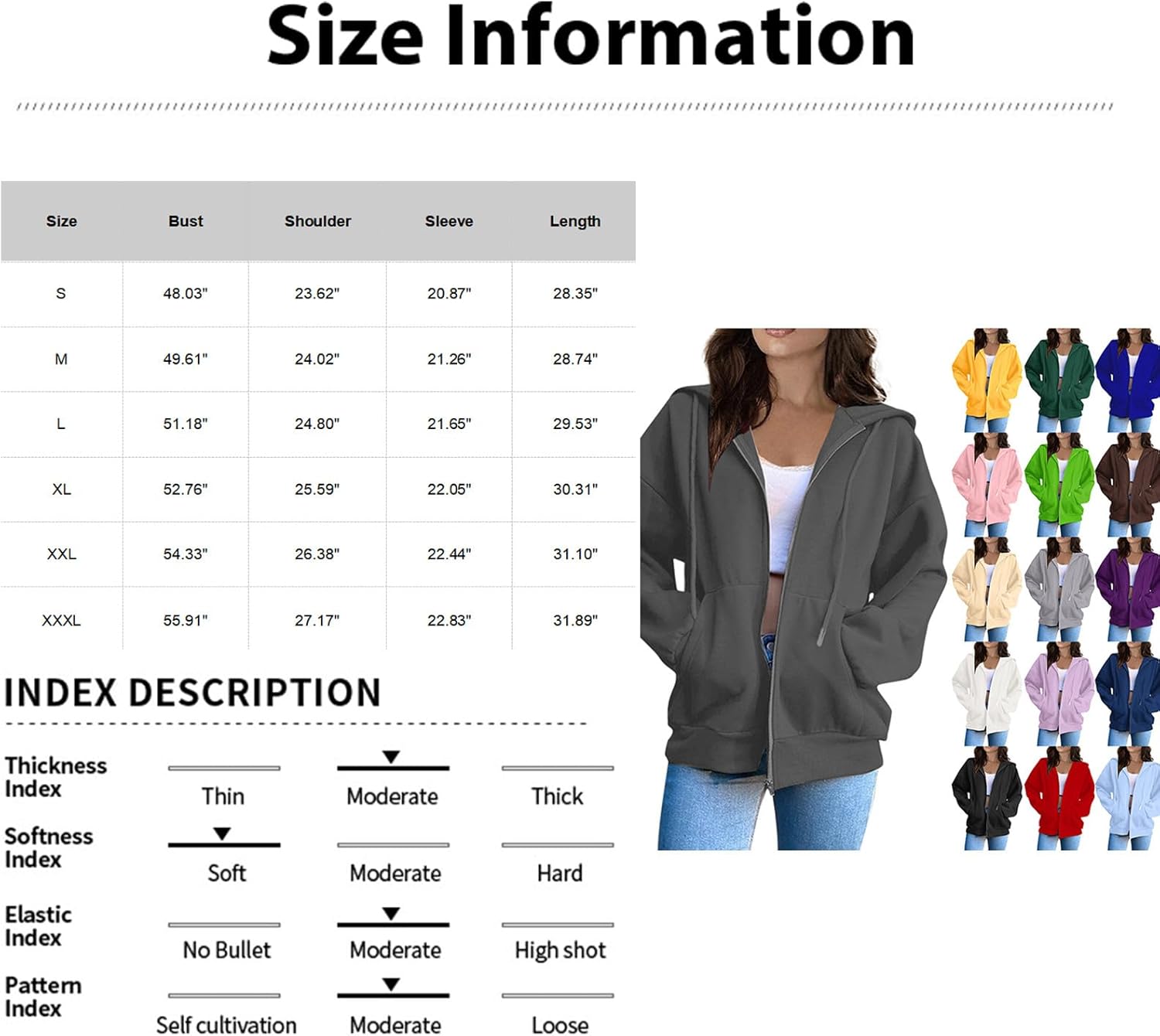 Oversized Women’s Casual Full-Zip Hoodie Lightweight Long Sleeve Sweatshirt Casual Jacket with Pocket