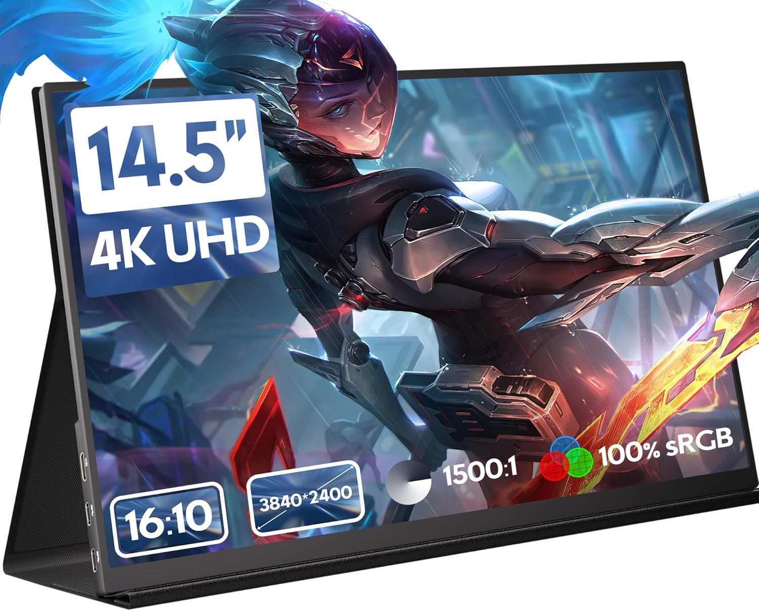 ZSCMALLS 14.5” 4K 60Hz Portable Gaming Monitor for Laptop, 3840P×2400P IPS Screen with HDR, 1500:1 FreeSync, Ultra Slim & Eye Care,Travel Monitor External Screen for Laptop, PC, PS5, Mac, Xbox